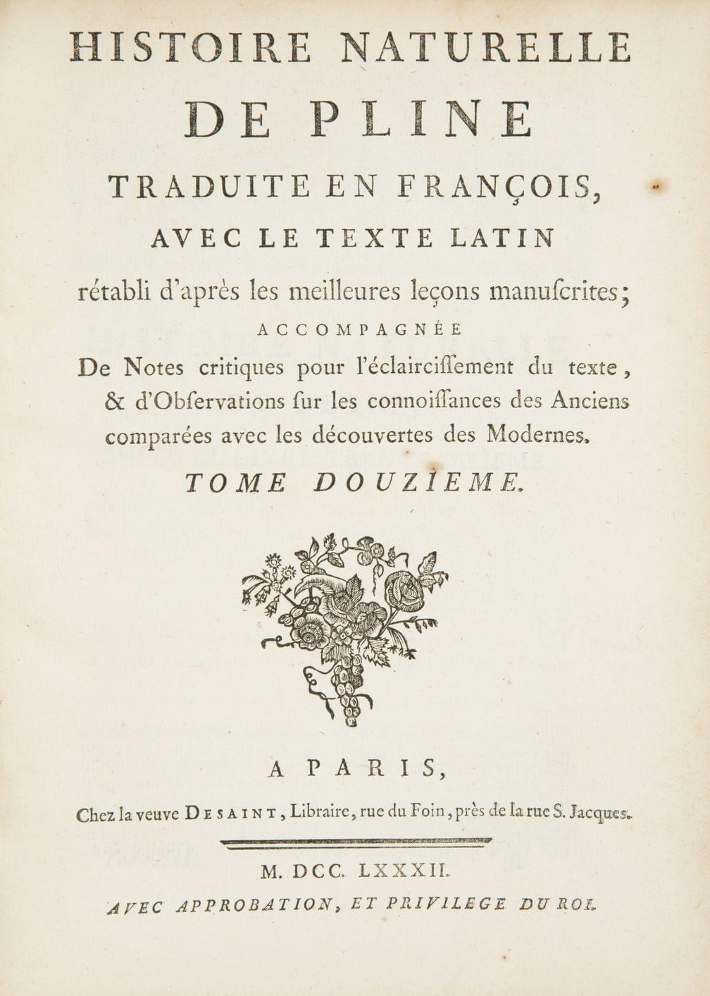 89. PLINE Le Jeune: Histoire Naturelle. Paris, Veuve Desaint, 1772;