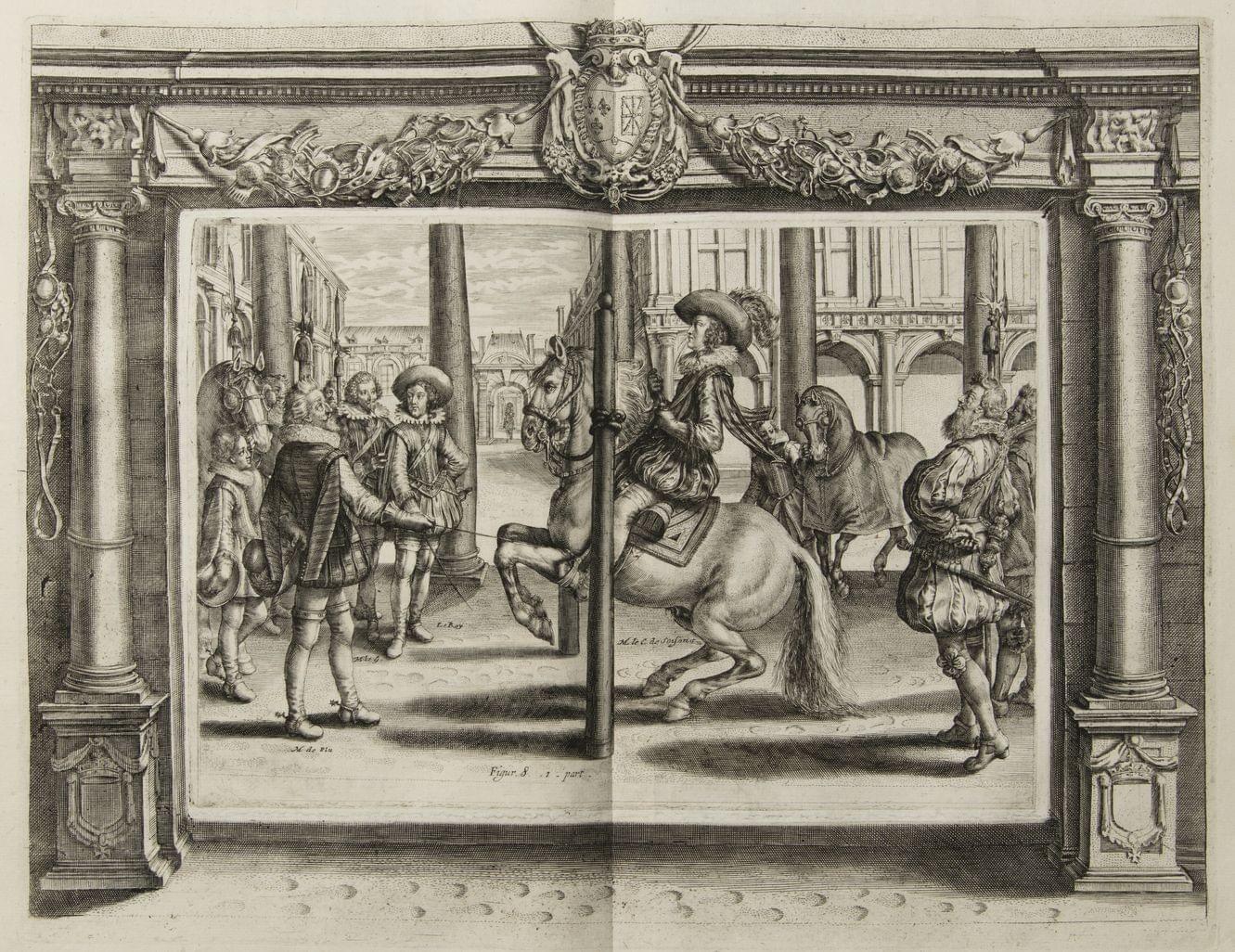 91. PLUVINEL (Antoine de): L'instruction du Roy en exercice de monter à cheval, Paris, Nivelle, aux dépens de Crispin de Pas, 1625;