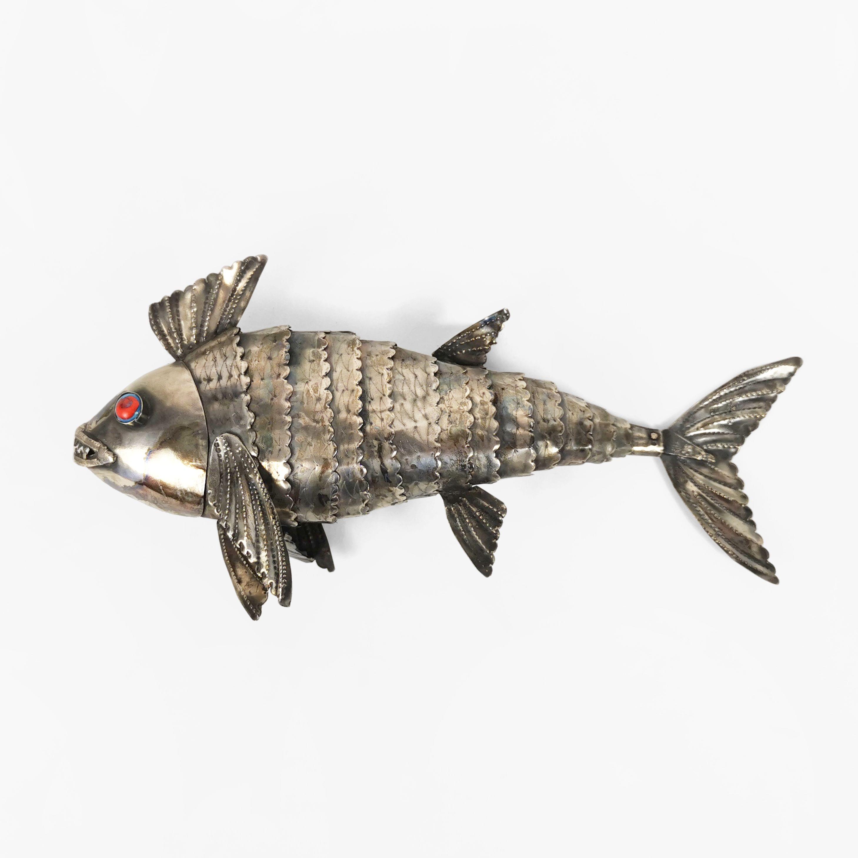 3286. *Pendentif retenant un motif de poisson en corail rose sculpté (...