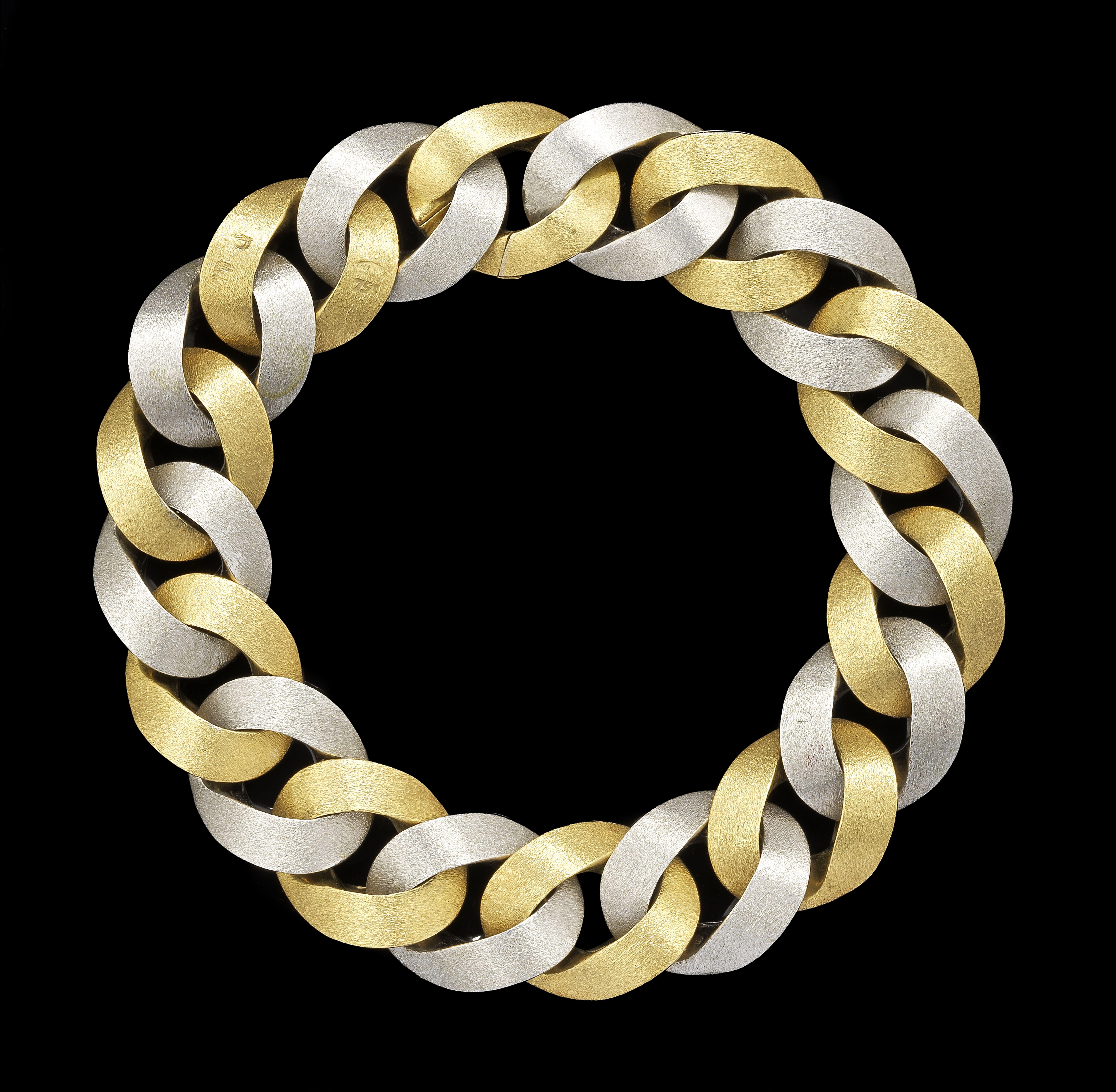 3594. Pomellato, bracelet à maille ovale deux ors à effet brossé