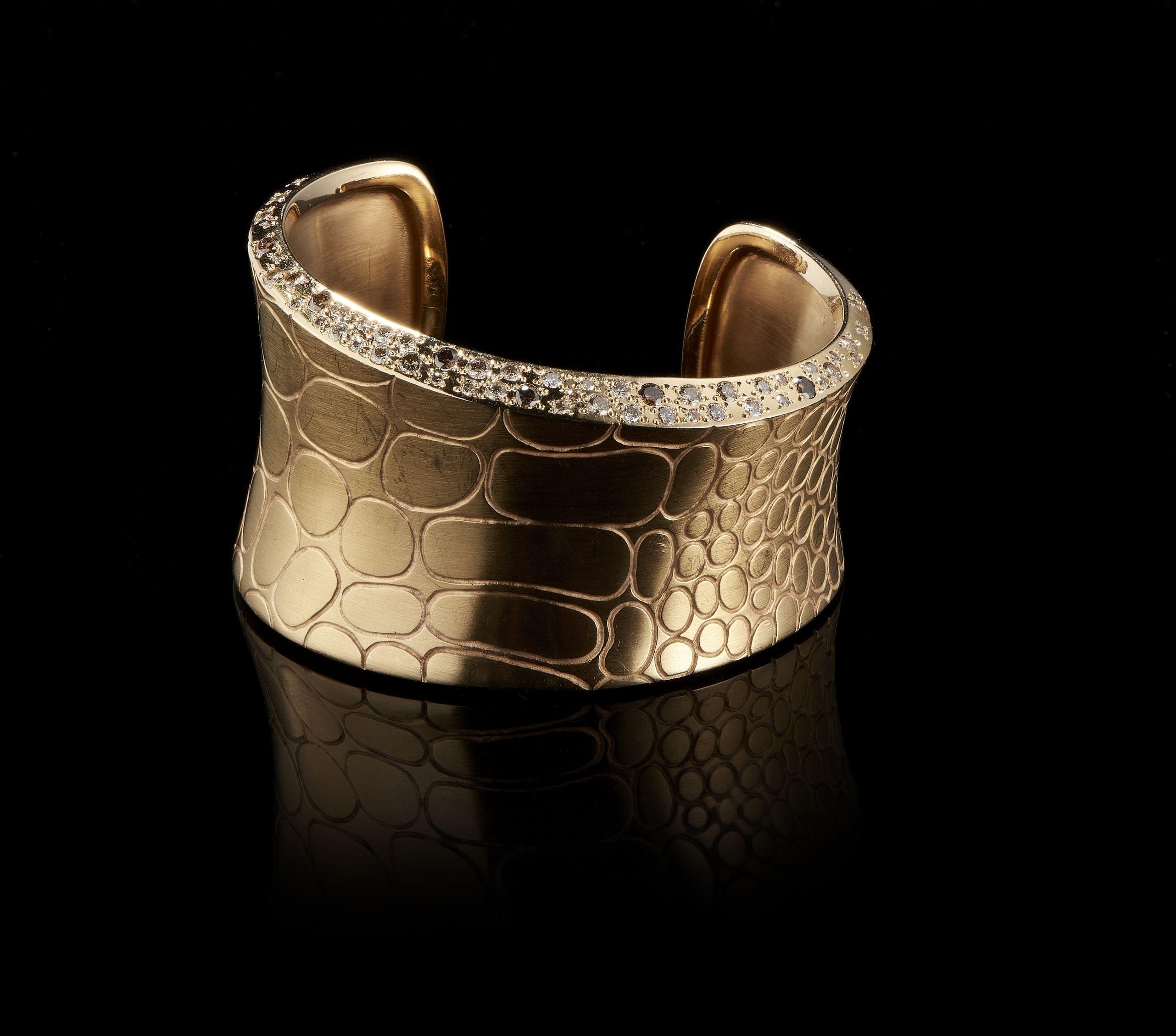 238. Pomellato, bracelet manchette stylisé serti sur une tranche d'un pavage de diamants et de diamants cognac