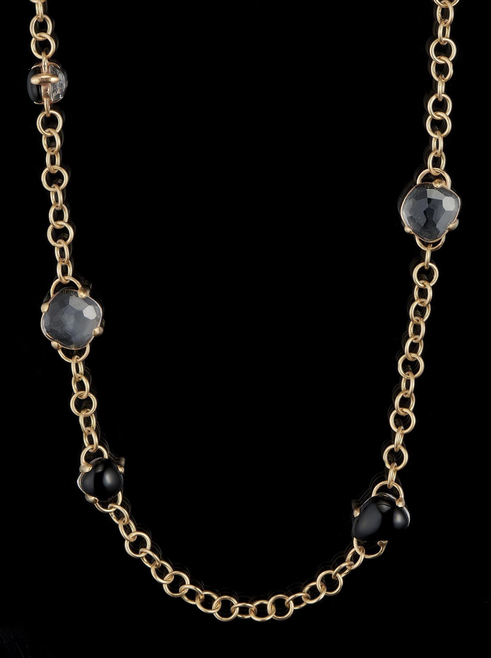 239. Pomellato, ensemble d'un collier et d'un bracelet à maille ronde pouvant former sautoir, sertis de cristal de roche facetté et d'onyx taille cabochon