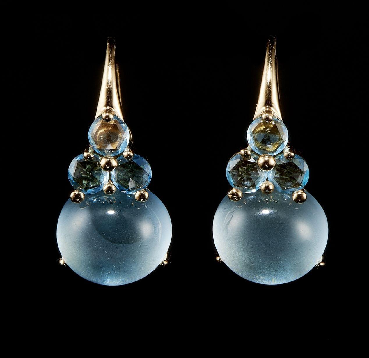 232. Pomellato, Luna, boucles d'oreilles serties de topazes bleues taille cabochon rehaussées de topazes bleues facettées