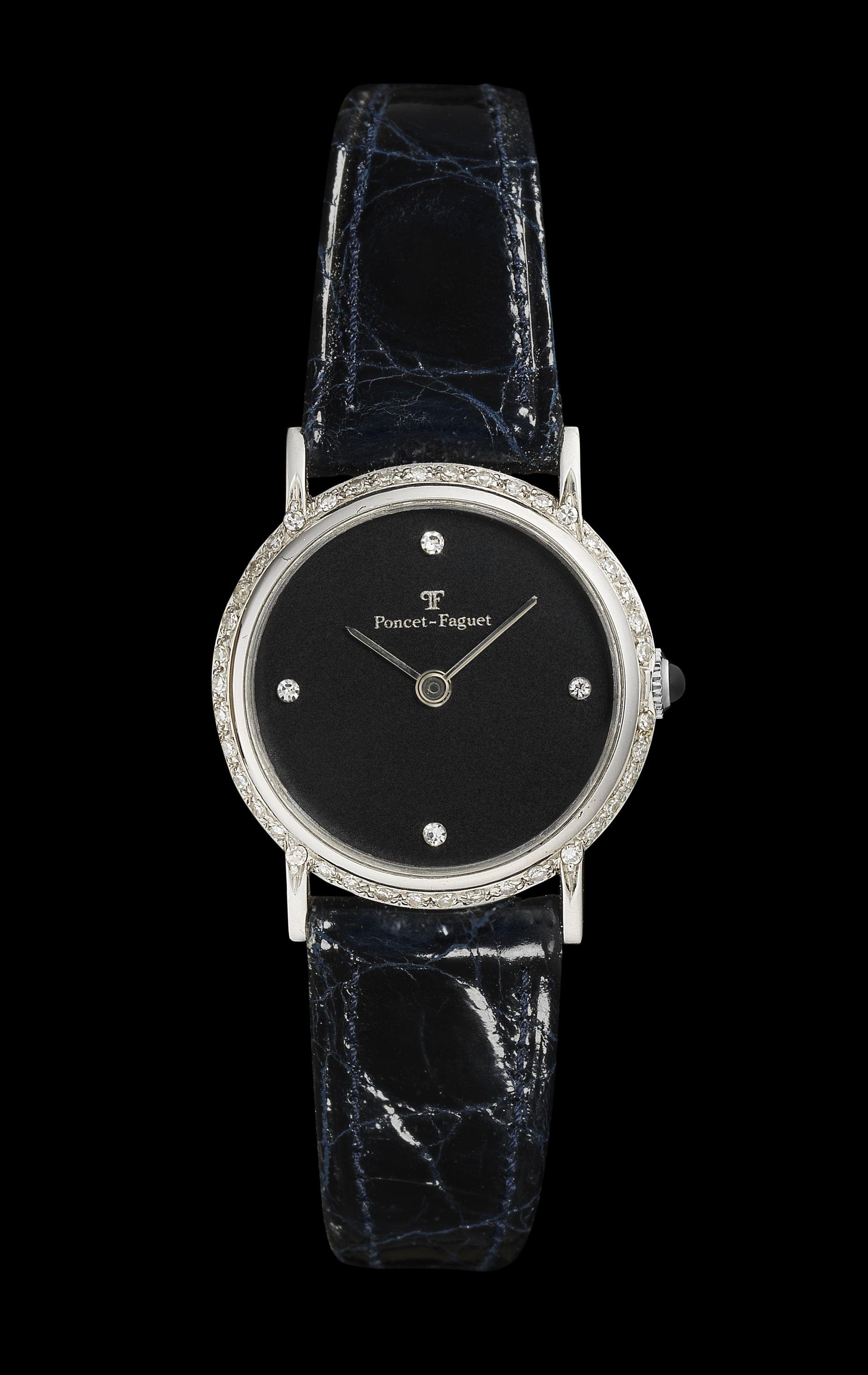 3534. Poncet-Faguet, montre ronde mécanique entourée de diamants