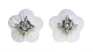184. Pendants d'oreilles sertis de plaques de nacre ajourées retenant...