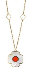 3259. Collier retenant un motif de fleur en nacre centré d'un coeur en...