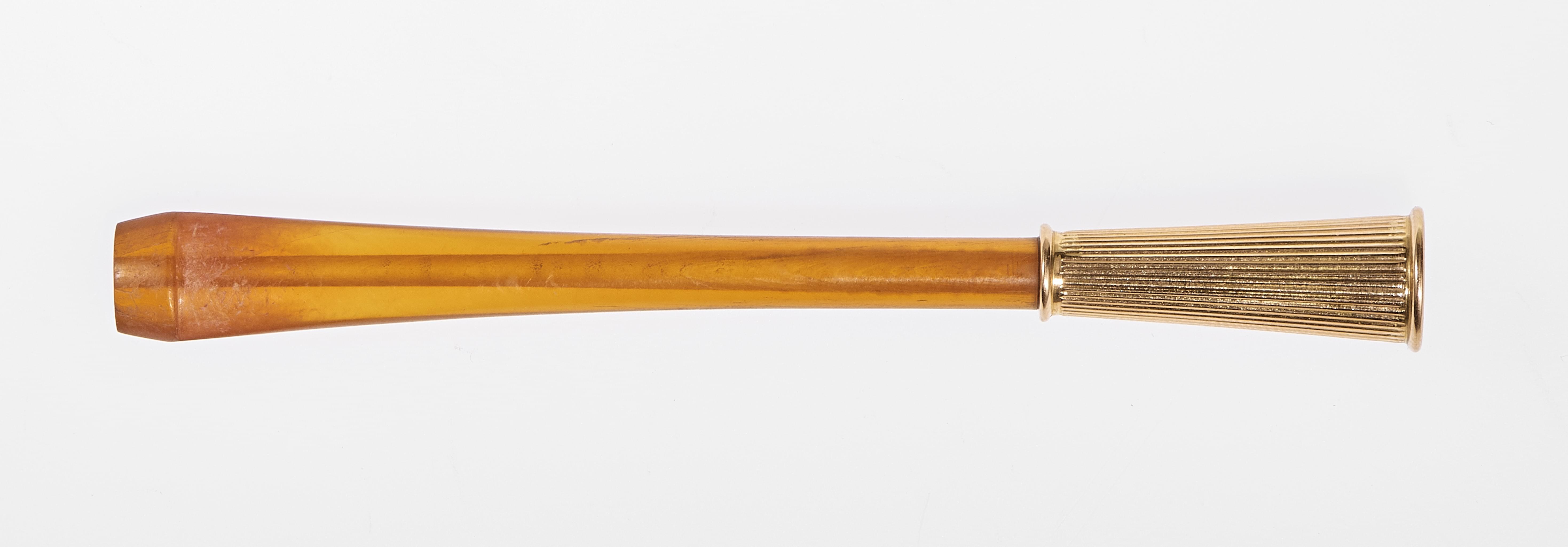 Or 750 et corne, L 9 cm, poids brut 4 g