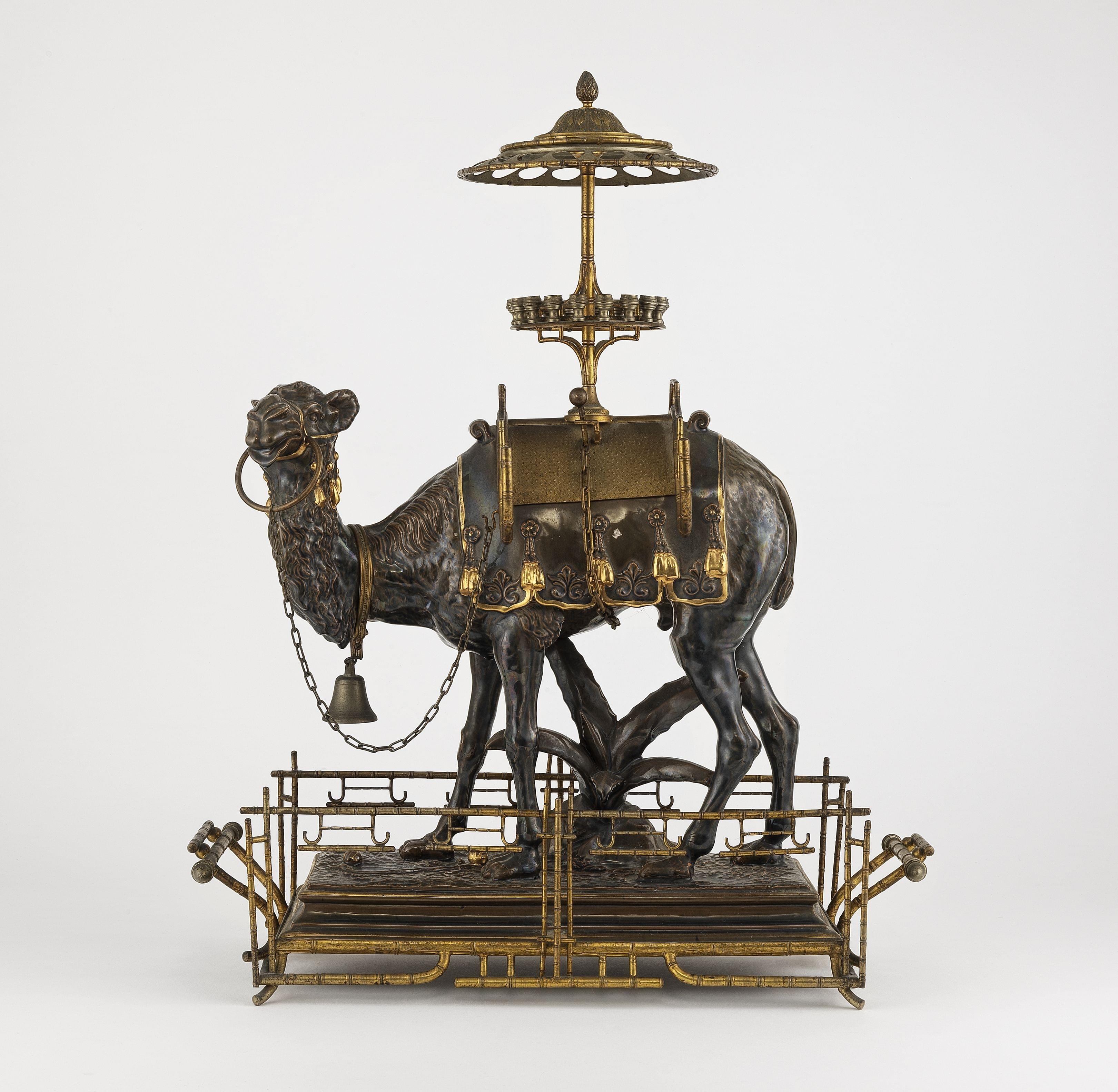 Plâtre gainé de papier, métal et socle en bois noirci tourné, H...