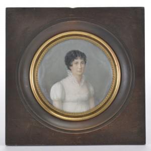 miniature ronde, début XIXe s, gouache sur papier, D 7,5 cm