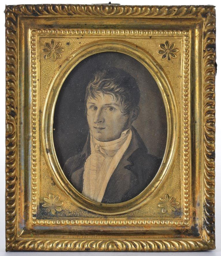 miniature ronde, début XIXe s, gouache sur papier, D 7,5 cm