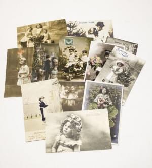 Ensemble de 12 cartes postales représentant des enfants, circa 1...