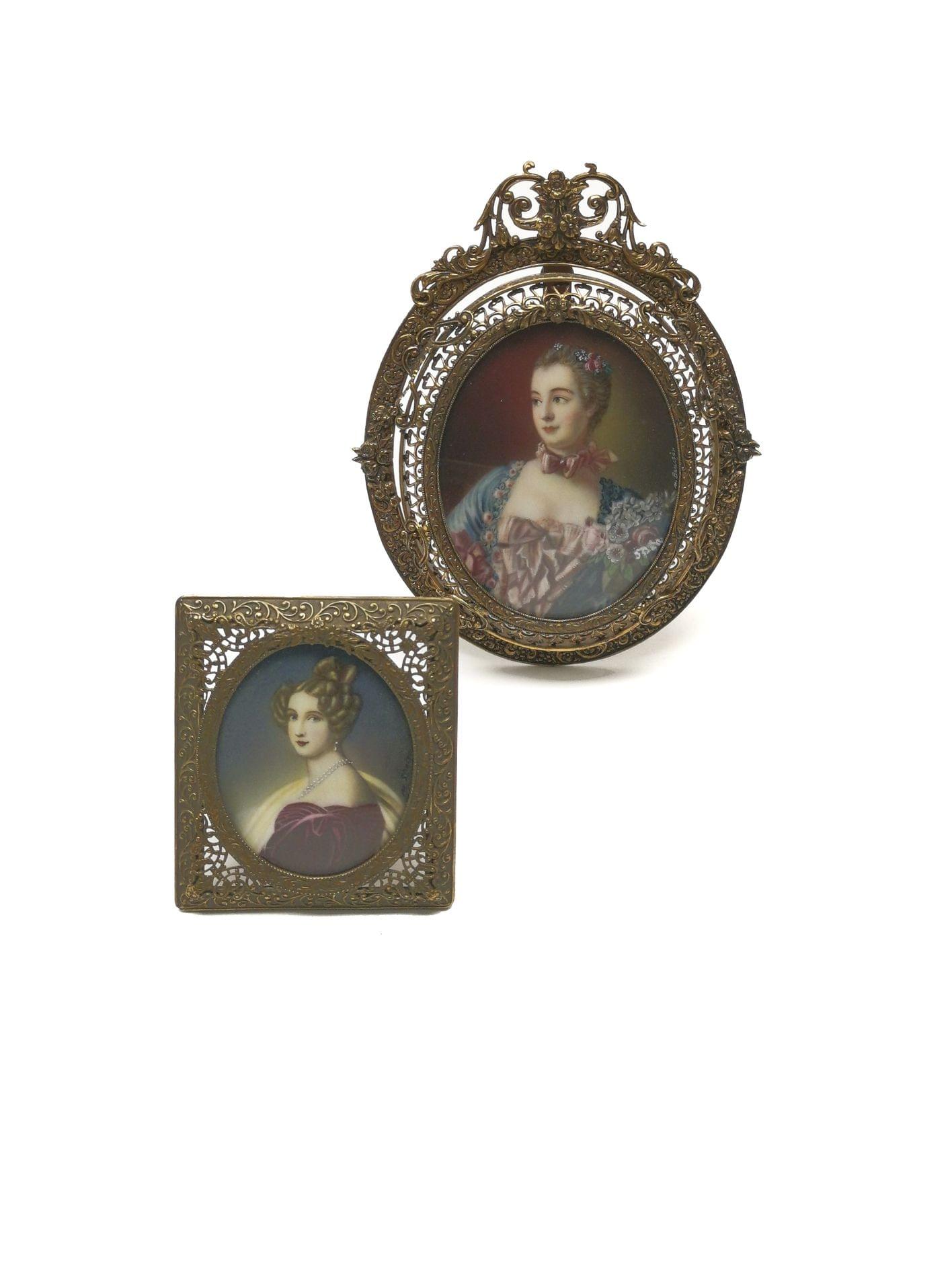 Miniatures à la gouache sur ivoire, XIXe s, l'une signée Finot e...