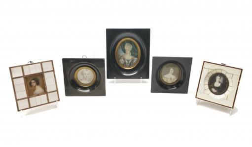 Trois miniatures, gouache sur ivoire, D 5 et 10 cm. Provenance:...