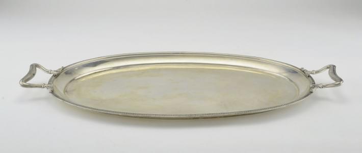 145. Plateau de service ovale à bordure de feuilles d'eau