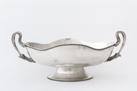 650. Grande coupe ovale à bordure de feuilles d'eau et anses serpents