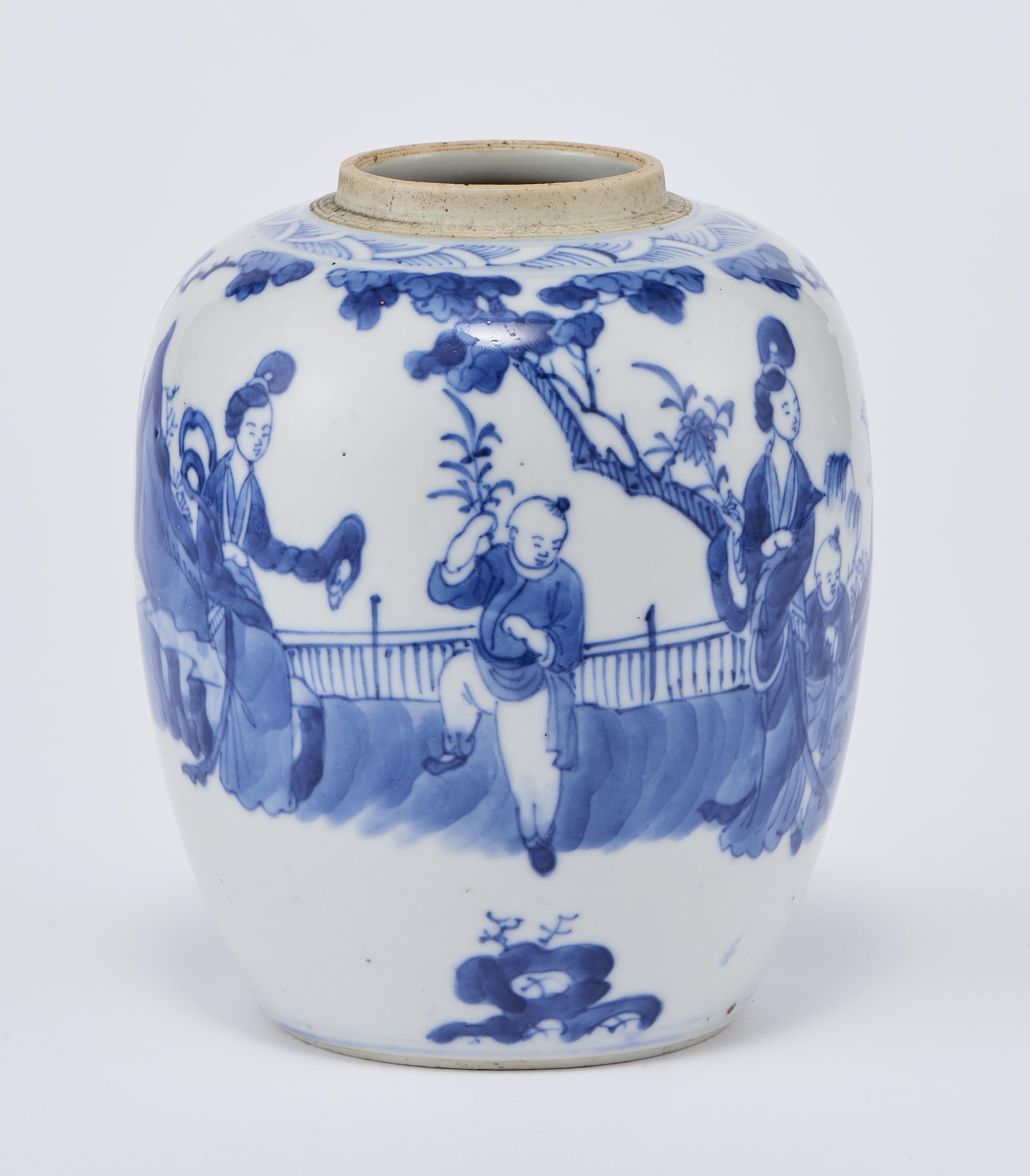 Porcelaine émaillée bleu blanc à décor d'une vue de jardin animé, H 12 cm