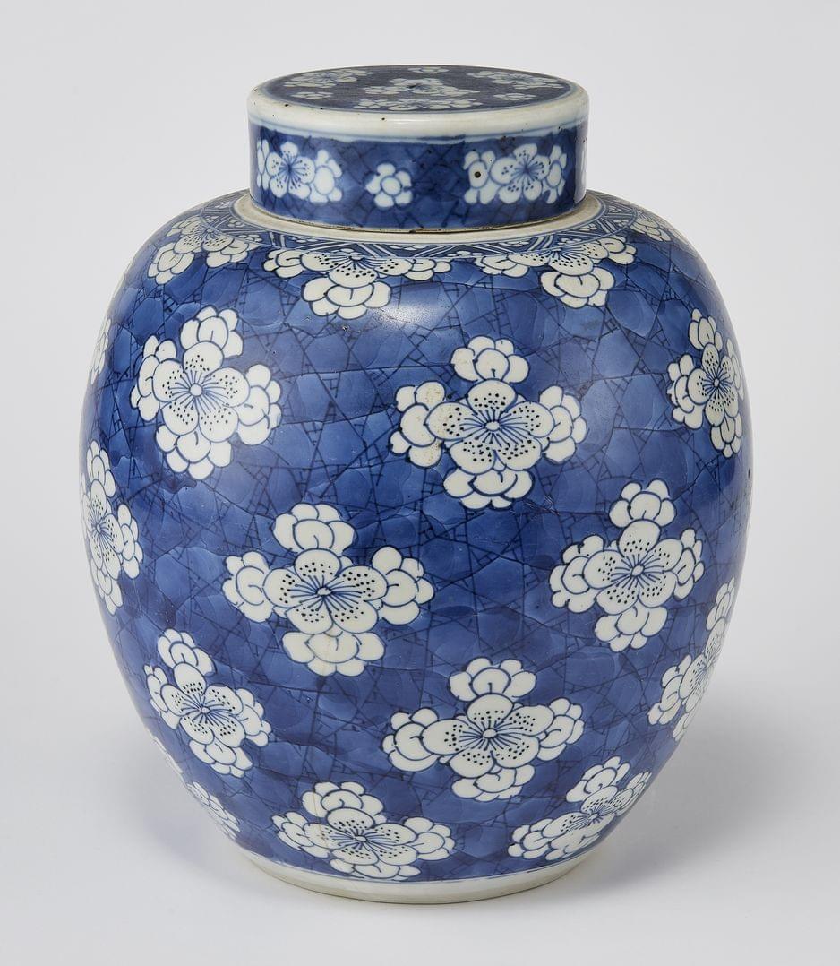 Porcelaine émaillée bleu blanc, à décor de fleurs de prunus, H 25 cm