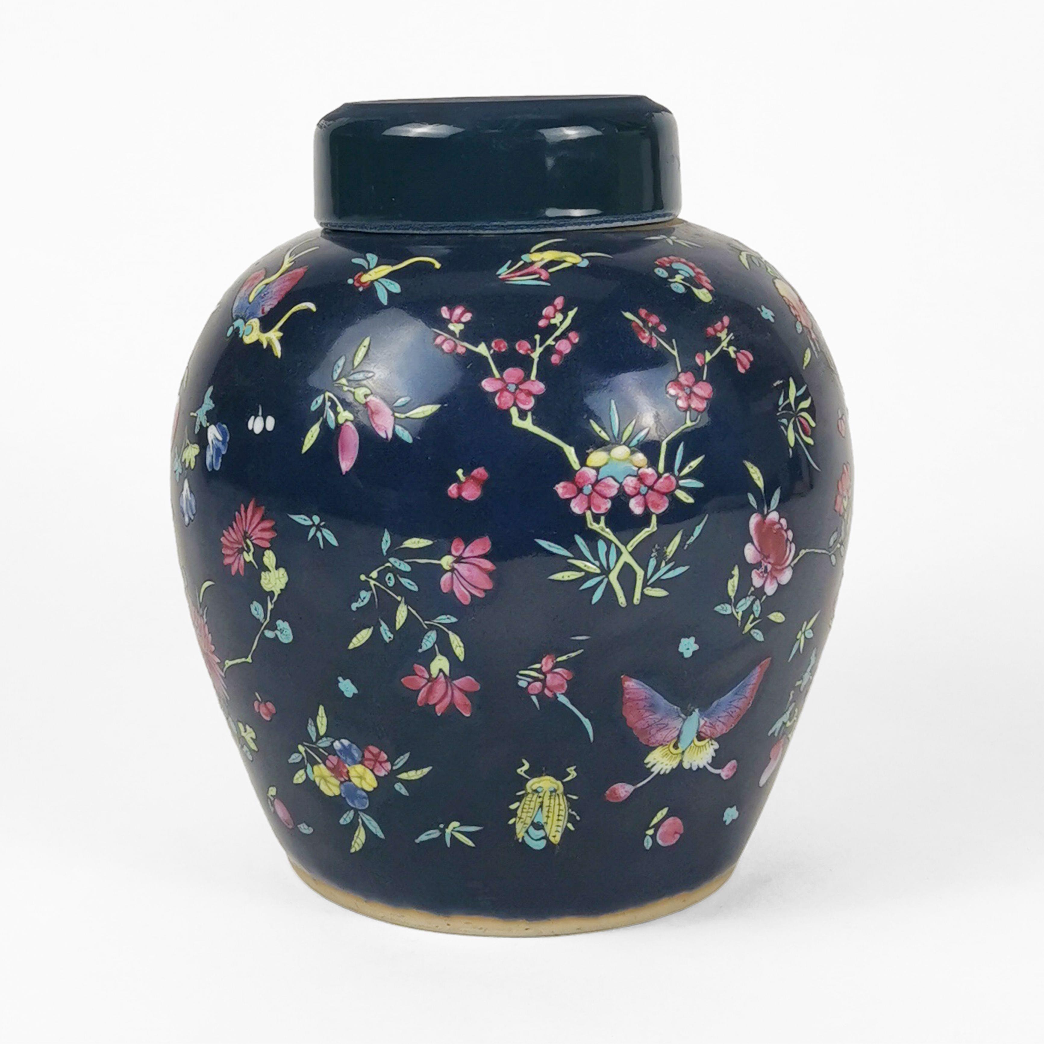 Porcelaine émaillée bleu blanc à motifs de fleurs, H 22 cm