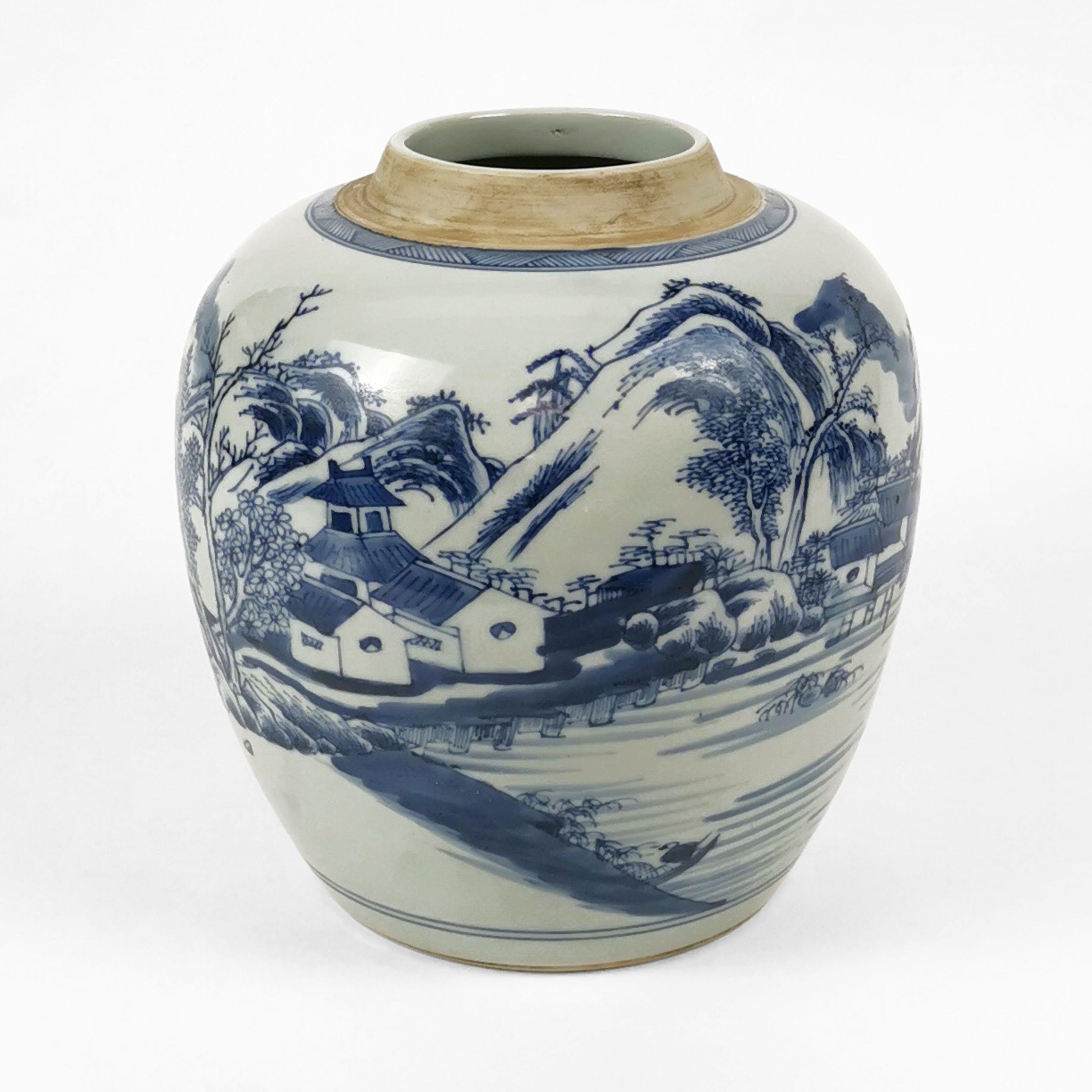 Porcelaine émaillée bleu et blanc à décor de paysage, H 23 cm