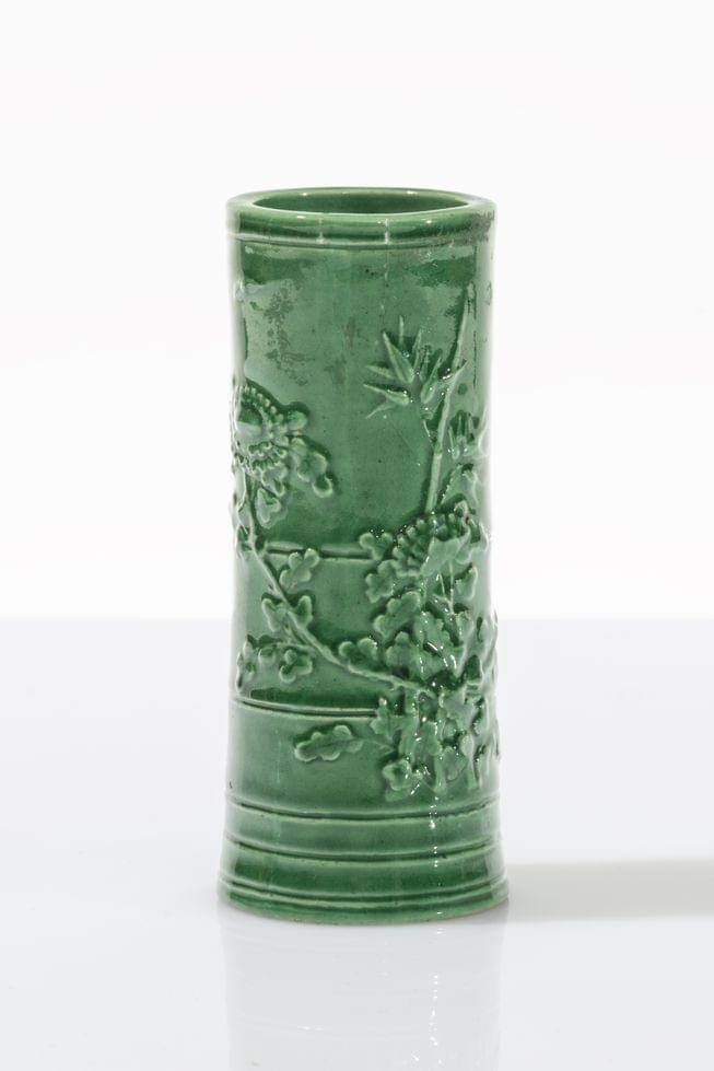 Porcelaine à décor d'oiseaux en camaieu vert et or