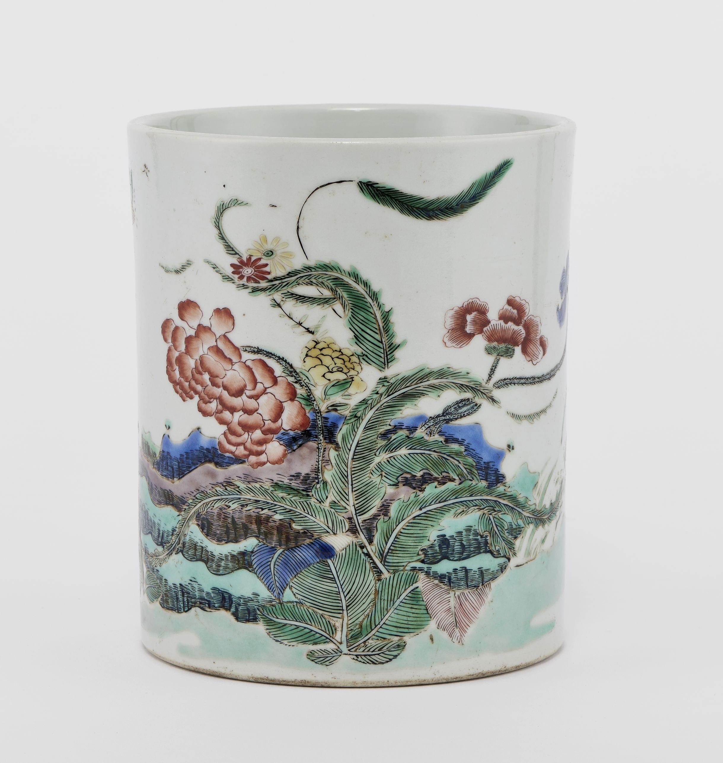 358. Service famille verte à décor de vases fleuris, marli à parclose...