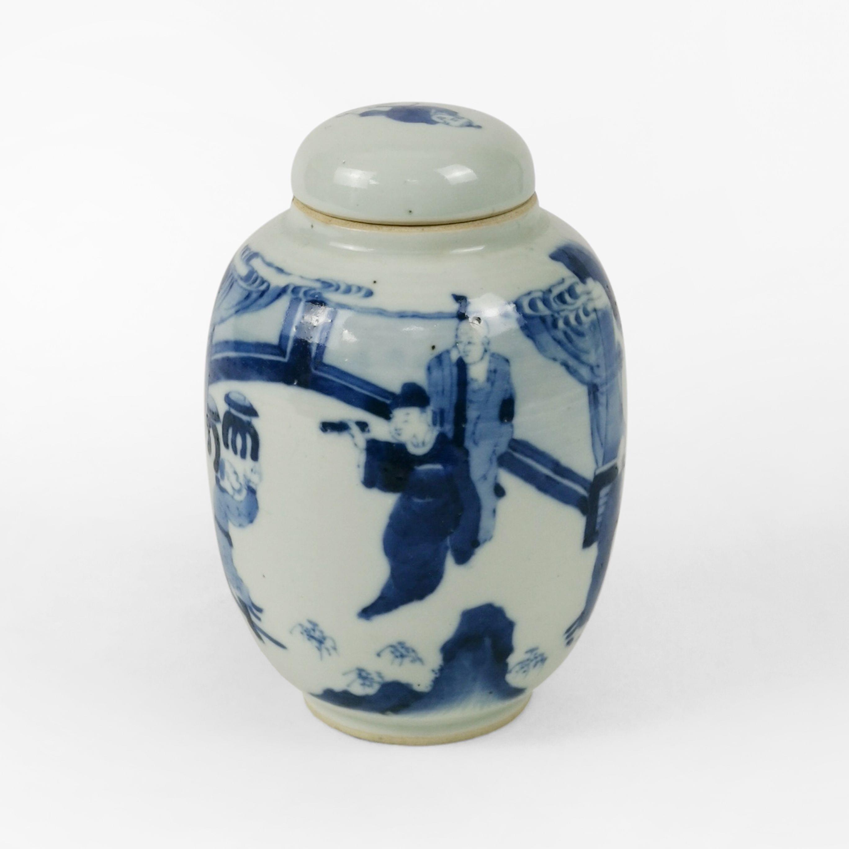 Porcelaine émaillée bleu blanc à décor d'une scène de palais, H 15 cm