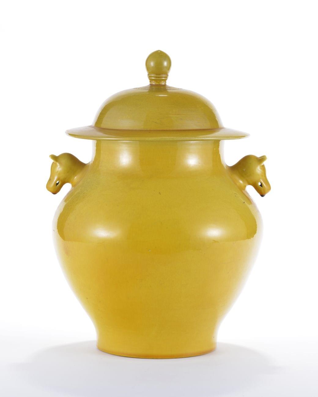 Porcelaine monochrome émaillée jaune, Chine, dynastie Qing, H 36 cm