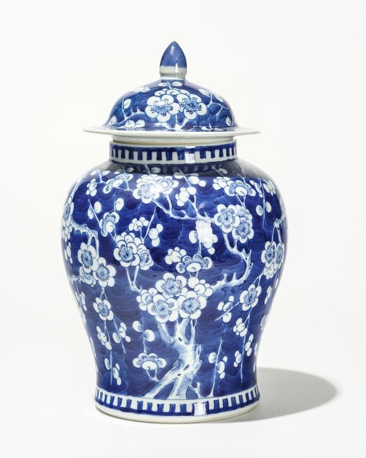 A décor blanc bleu de prunus, Porcelaine, H 32 cm