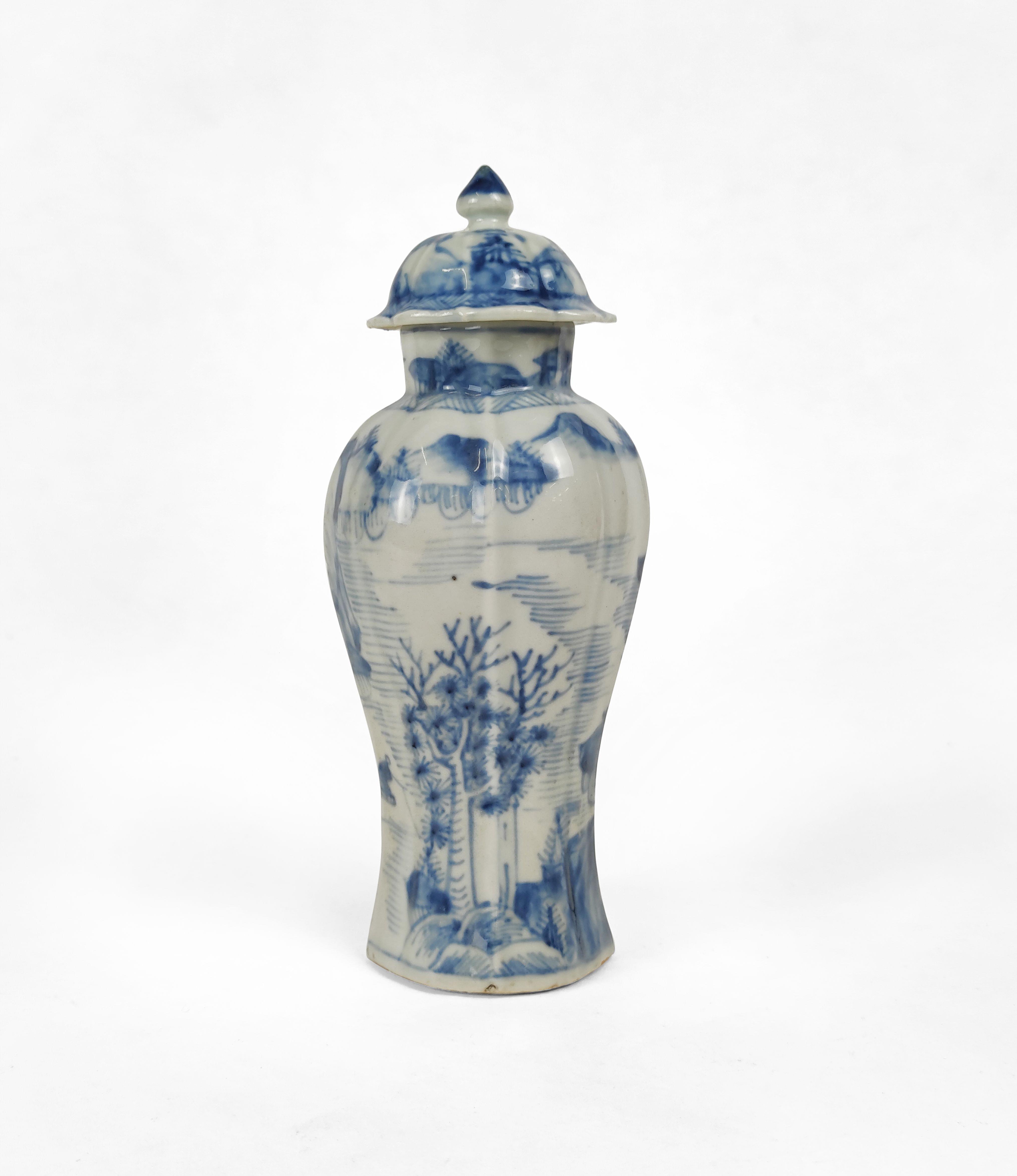 Porcelaine émaillée bleu blanc à décor d'un paysage, H 21 cm