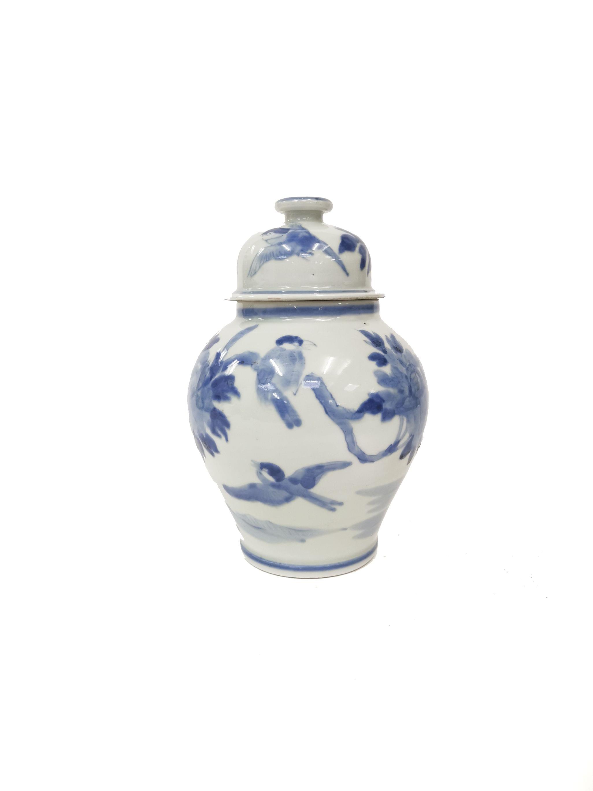 Porcelaine bleu blanc à motifs d'oiseaux, H 24 cm