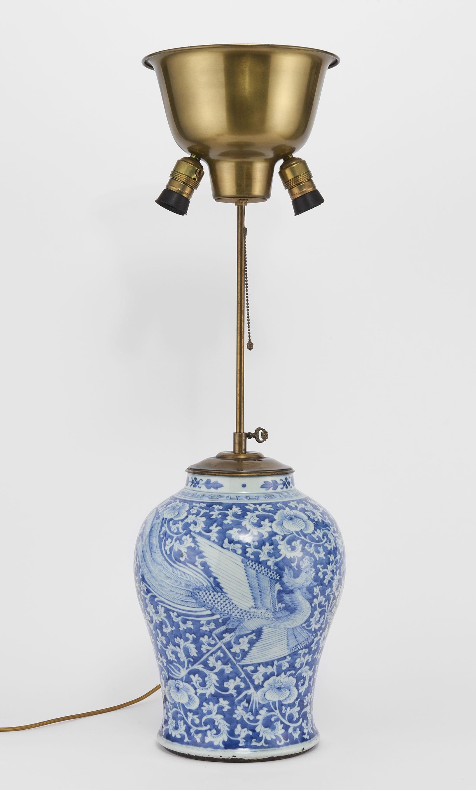 Porcelaine à décor émaillé bleu blanc à décor de phénix et dragon, H 35 cm. Provenance: collection Pernet-Villaverde