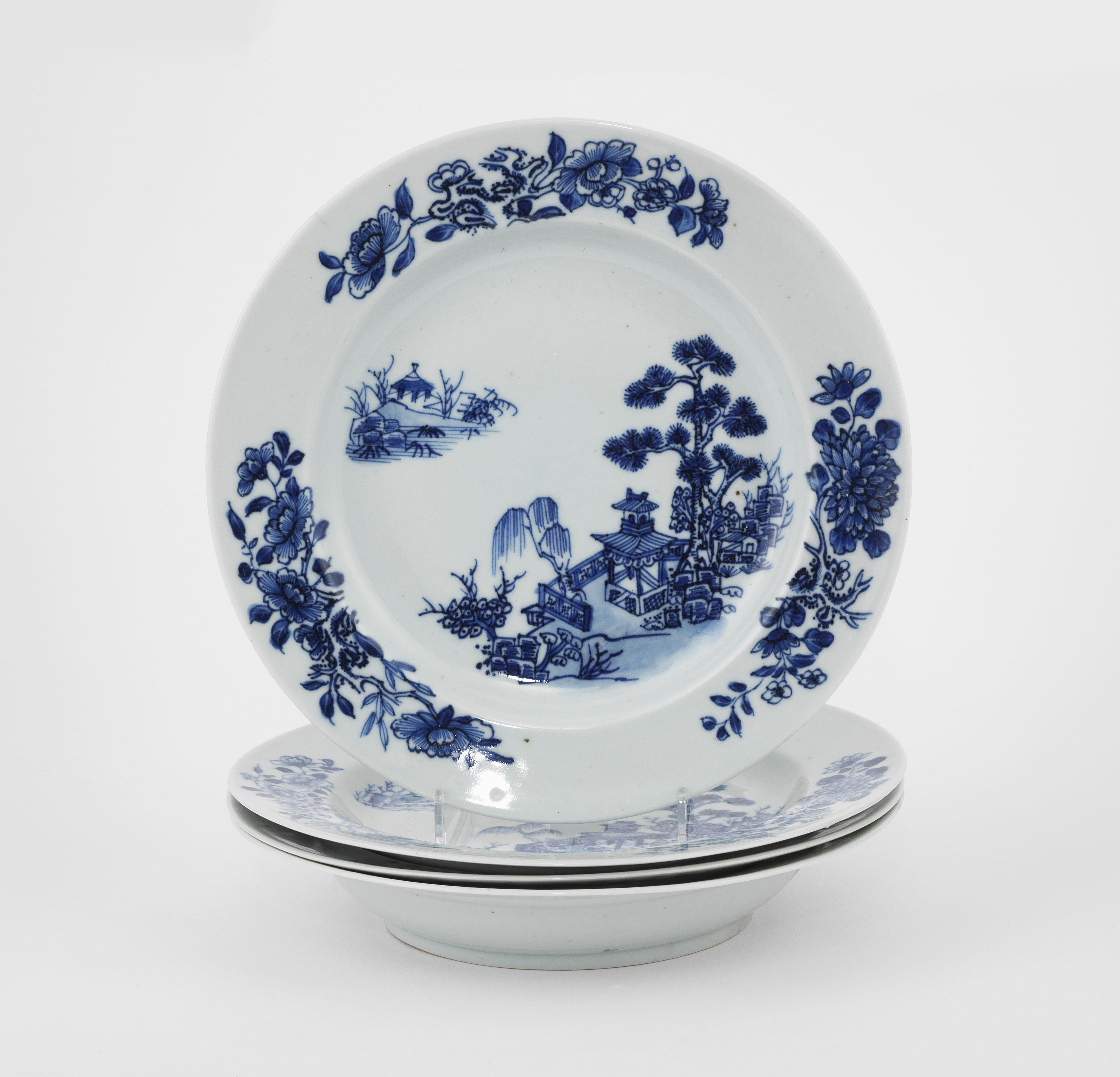 4557. Quatre assiettes provenant de l'épave du Nanking Cargo, Chine, Compagnie des Indes, XVIIIe s