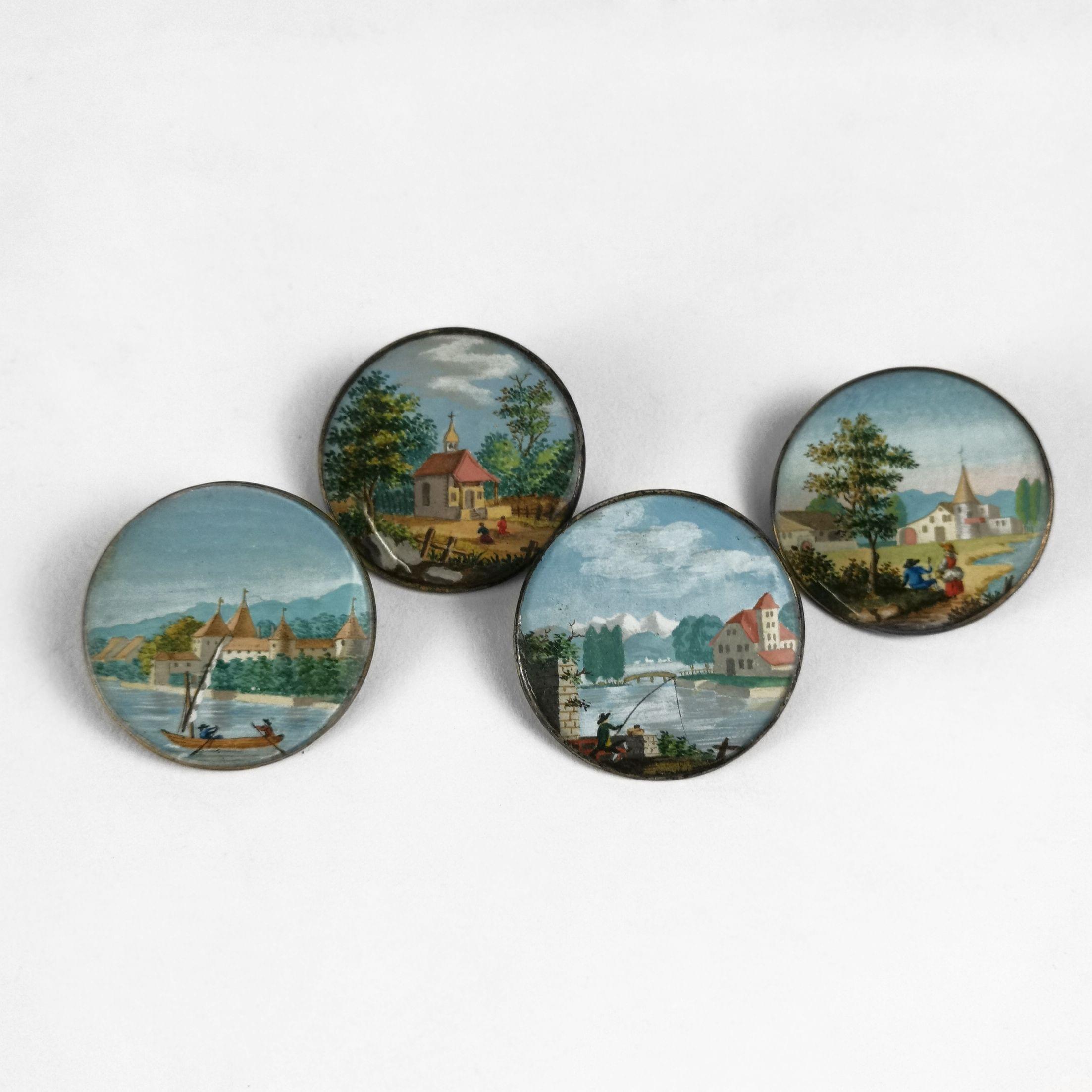 4398. Quatre boutons peints de paysages