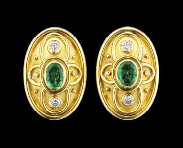 277. Boucles d'oreilles ovales serties d'émeraudes taille ovale (env....