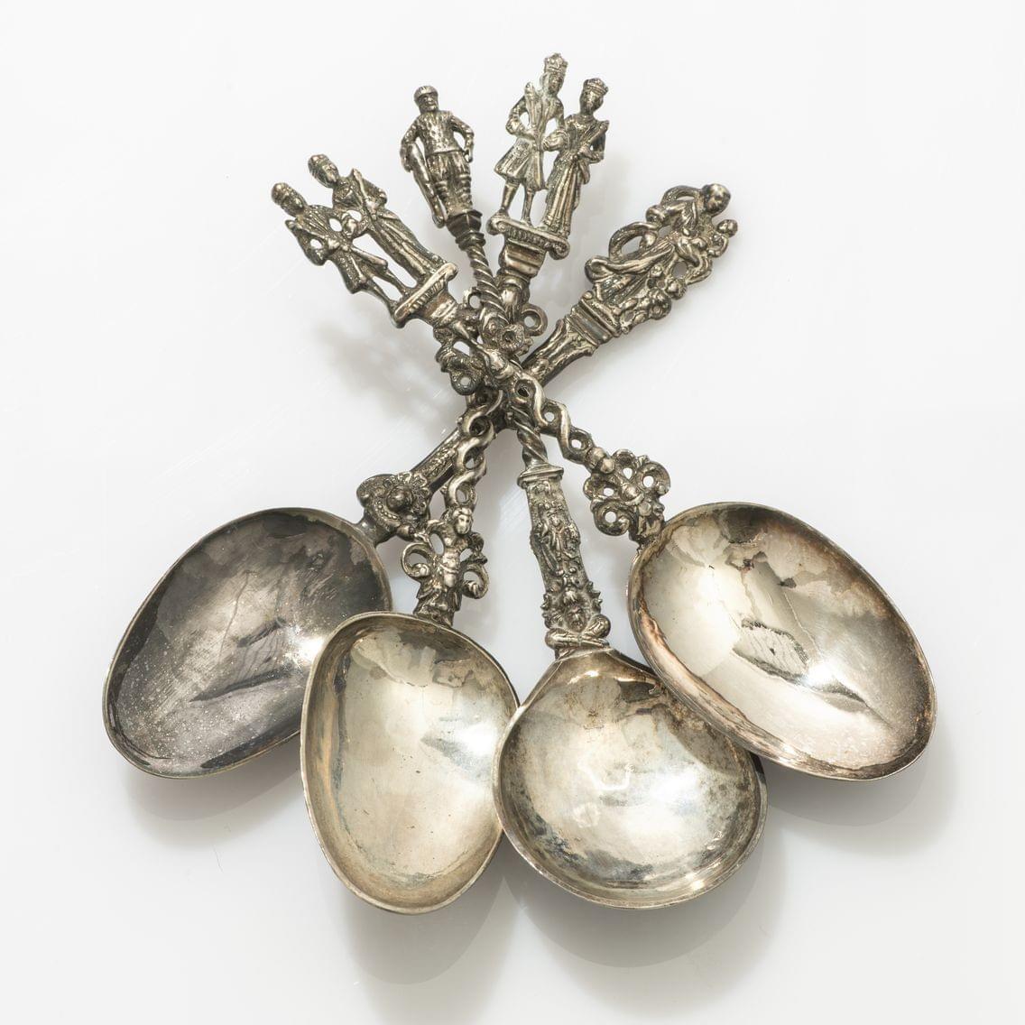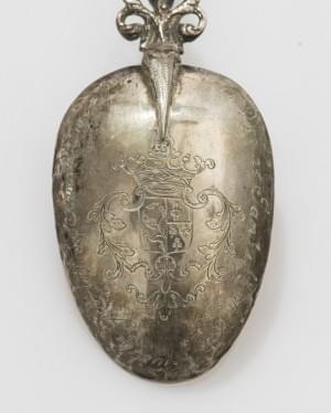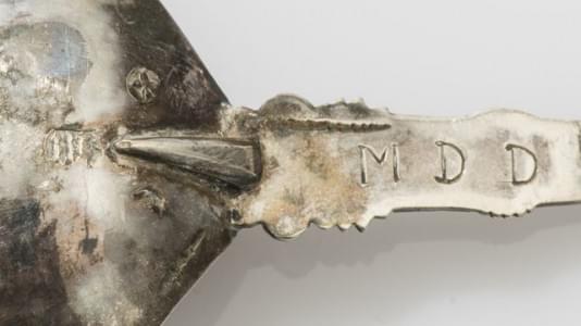 101. Deux grandes et une petite cuillères à manches torsadés et décor...