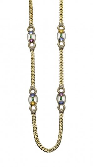 234. Sautoir ouvrant à maille gourmette plate ponctué de quatre motif...