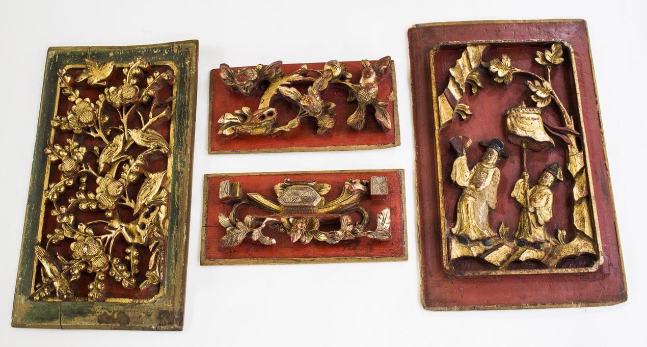 Bois sculpté à décor floral laqué rouge et or, Chine, fin XIXe s