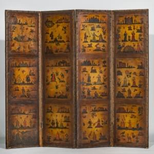 A décor de personnages et animaux, cuir de Cordoue, XVIIIe-XIXe...