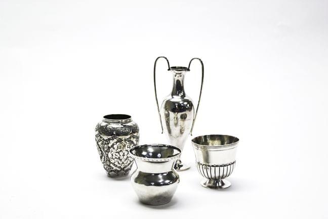 232. Suite de quatre assiettes de présentation tripodes à bordure d'o...