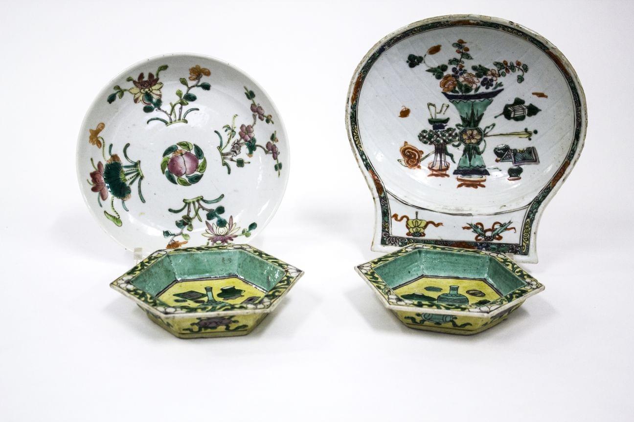 De formes diverses, à décor famille verte de fleurs, D de 12 à 18 cm
