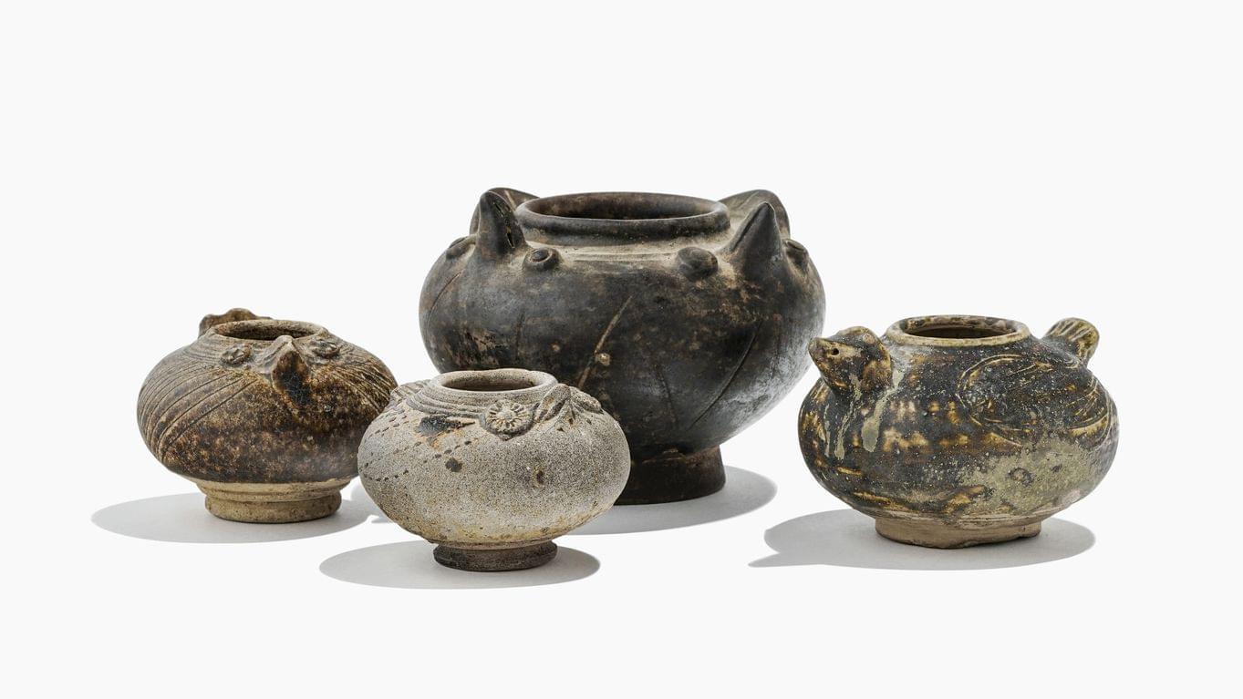 3495. Quatre pots à chaux zoomorphes, Cambodge, Empire Khmer, XIIe-XIIIe s