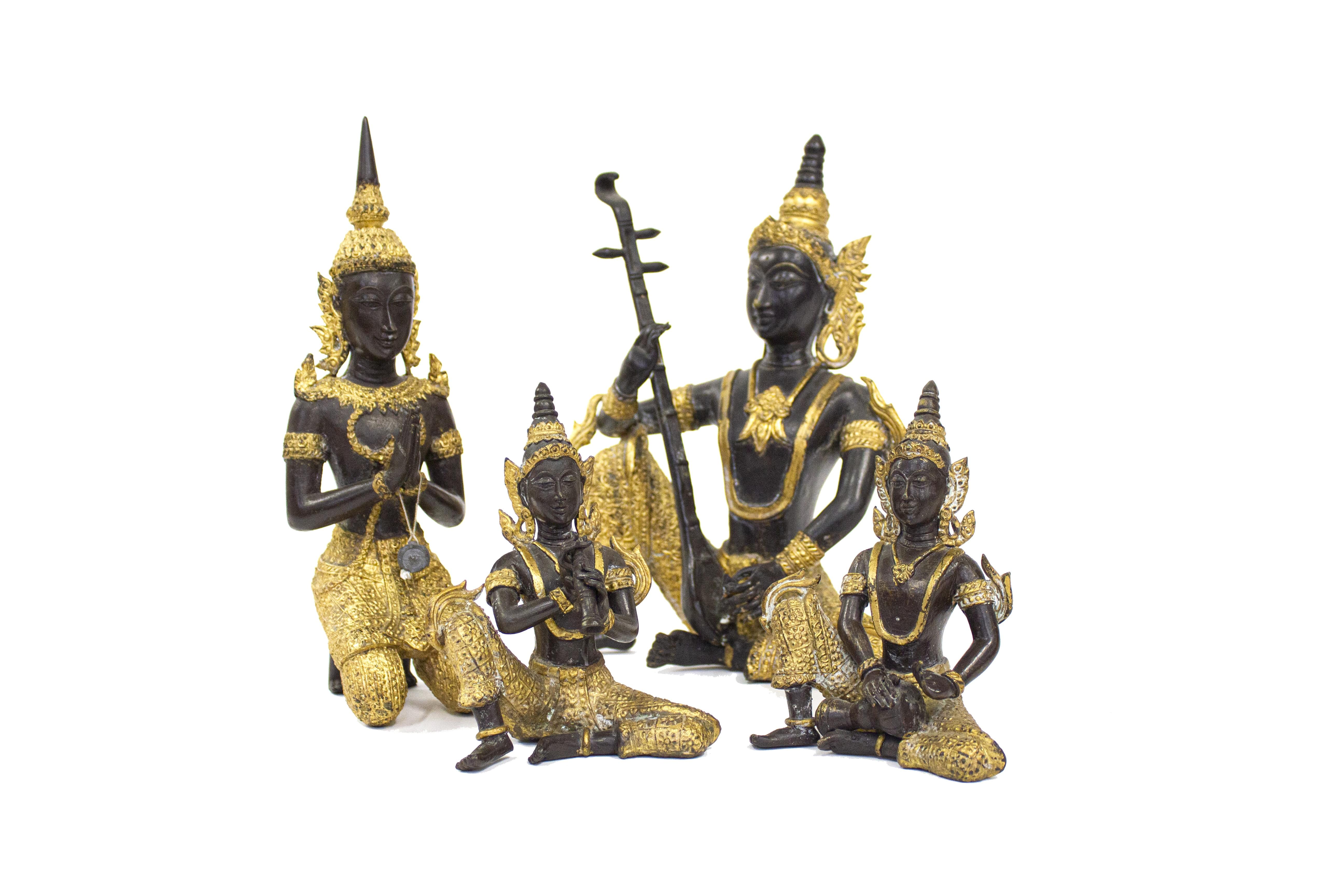 3625. Quatre statuettes de musiciens, Thailande, XXe s