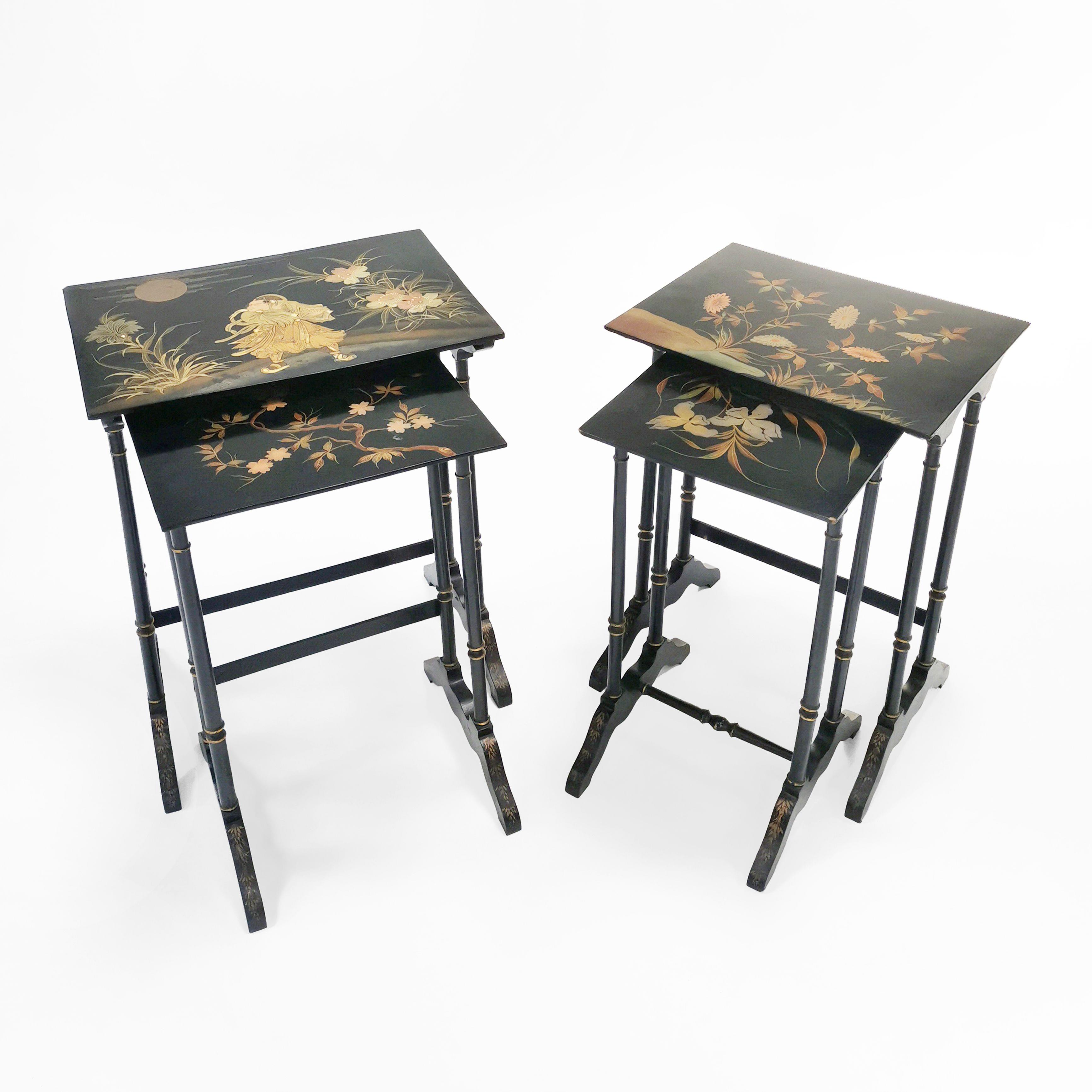 Bois laqué polychrome sur fond jaune à motifs au chinois, 74x80x...