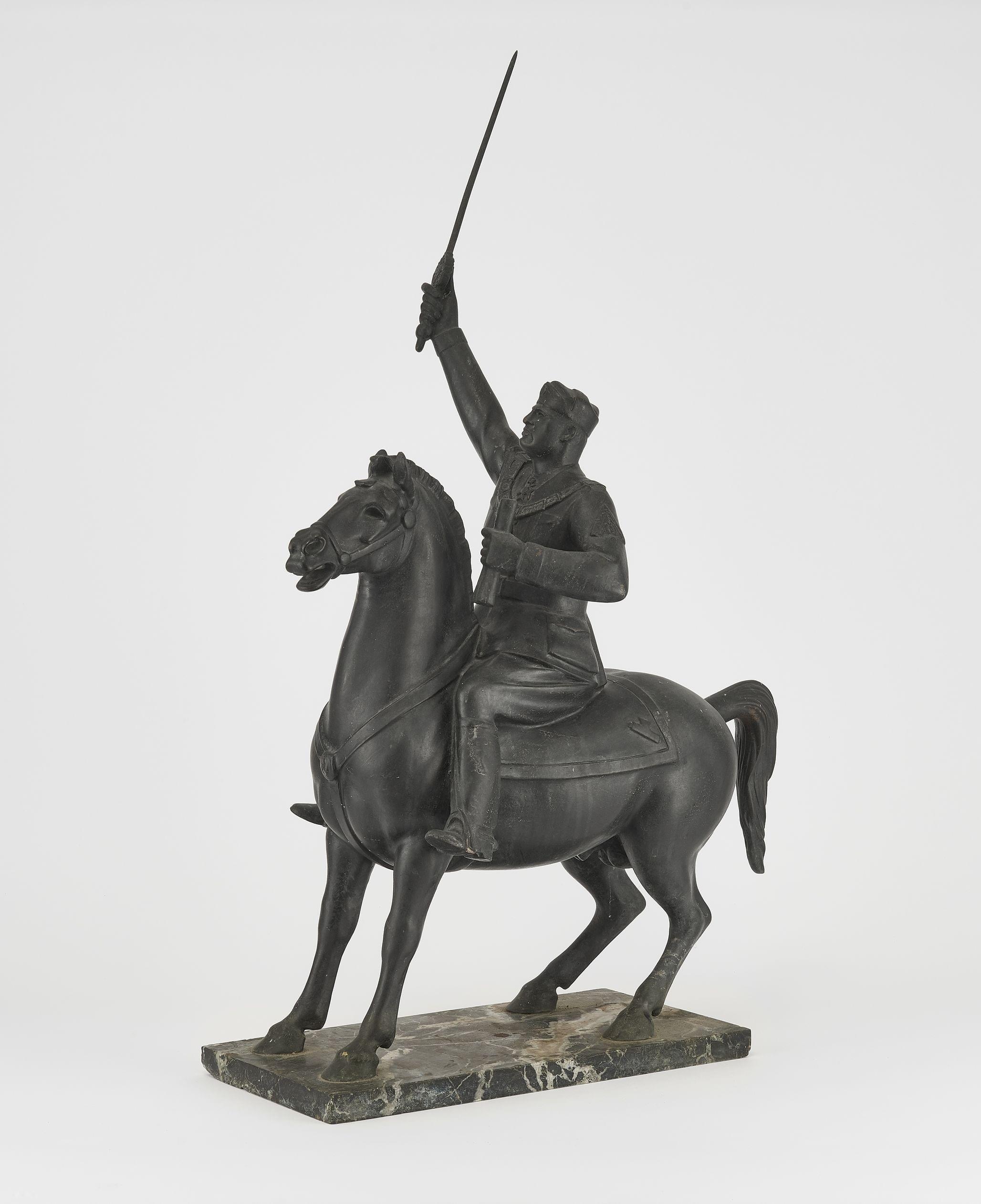 Statue équestre de Benito Mussolini avec l'épée de l'Islam, bronze, L 44 cm