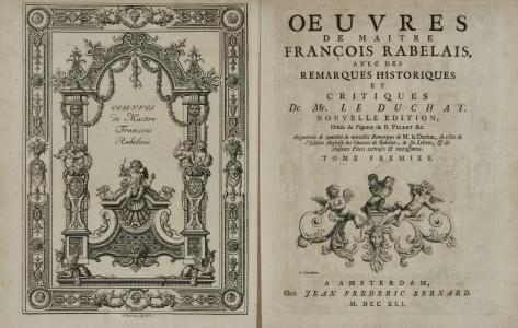 RABELAIS: Œuvres… avec des Remarques… de Mr. Le Duchat. Orné de fig. de B. PICART… Amsterdam, Jean-Frédéric Bernard, 1741;