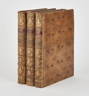 3 vol. in 4°, veau blond orné de l'époque, portrait et figures par Daullé de Sève.
