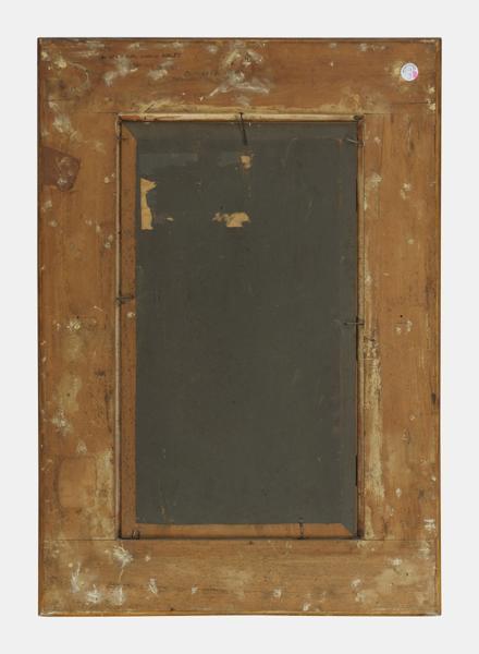 Paysanne au panier, huile sur panneau, signée, 48x26 cm
