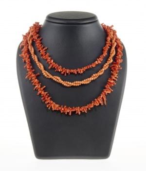 4114. Collier multi-rangs de perles de corail rouge et rose