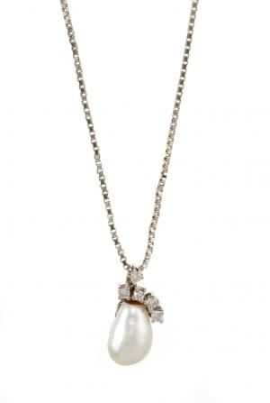 4119. Chaîne à maille vénitienne retenant un pendentif serti d'une per...