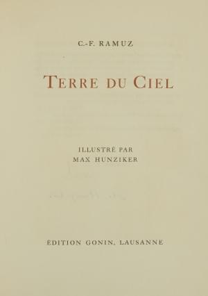 803. RAMUZ (c.f.): Terre du Ciel. Lausanne, Gonin, 1941